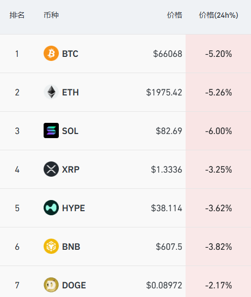 En lo relacionado con criptomonedas, las principales monedas amplían aún más la caída. Bitcoin cae más de 5% y el precio más reciente es 8B de dólares por unidad. Según datos de Coinglass, en las últimas 24 horas, más de 120k personas liquidaron posiciones en todo el mercado.